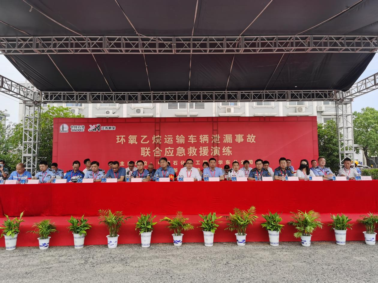 “落实安全责任,推进安全发展”,为了保障公司的安全生产,增强员工安全意识,提高自护自救能力,减少突发事故造成的损失,提高公司的安全管理水平,在建党100周年来临之际,同时也是第二十个全国“安全生产月”,由中国石化化工销售有限公司华东分公司主办,江苏新安物流有限公司承办的环氧乙烷运输车辆泄漏事故联合应急救援演练于2021年6月24日圆满完成。