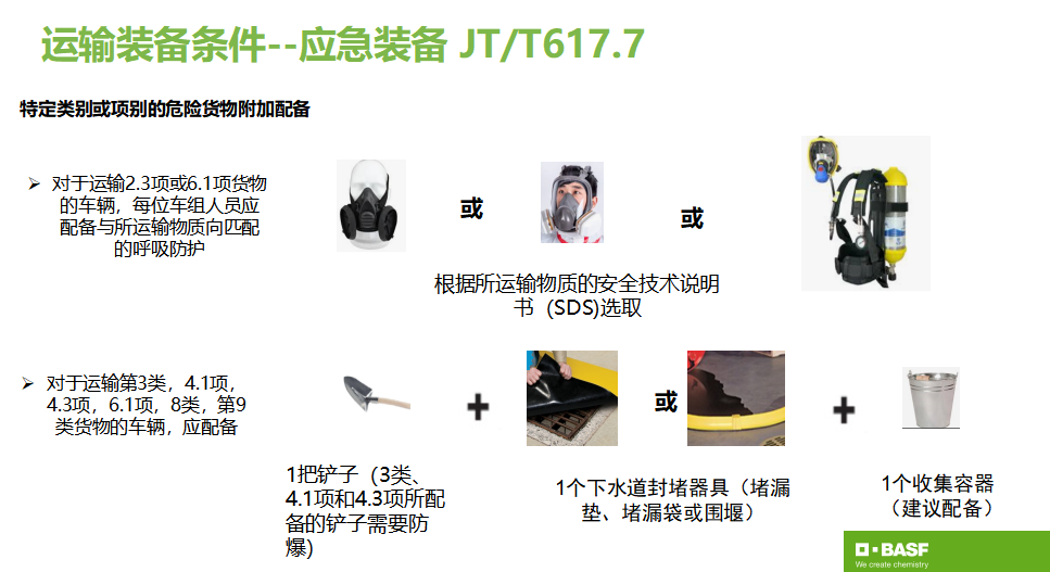 防护手套(危险货物运输车以及BASF签约普货车辆)、化学防护服(BASF签约危险货物车辆及有特殊要求的普货车辆)